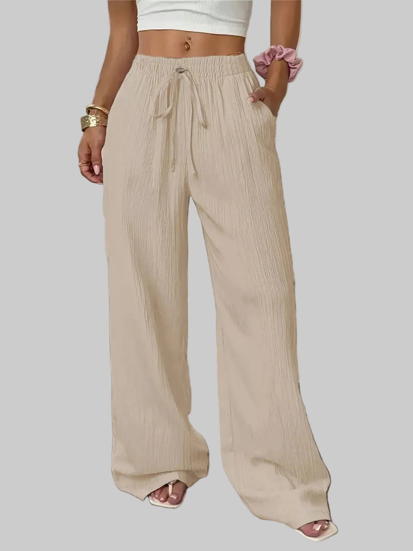 Amelia-approved wide-leg ease. Drawstring wide-leg pants designed for effortless comfort—light, flattering, and easy to style for everyday wear, travel, and relaxed polished looks.