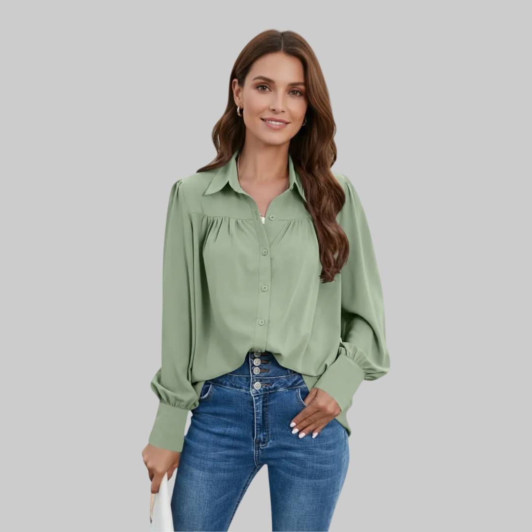 Amelia-approved statement sleeves. A lantern-sleeve shirt that brings elegant volume in the most refined way—polished, flattering, and effortlessly elevated for day-to-evening wear.